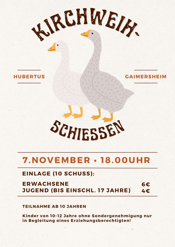 am Freitag, 7. November findet unser traditionelles Kirchweihschießen statt, zu dem wir euch alle recht herzlich einladen möchten.