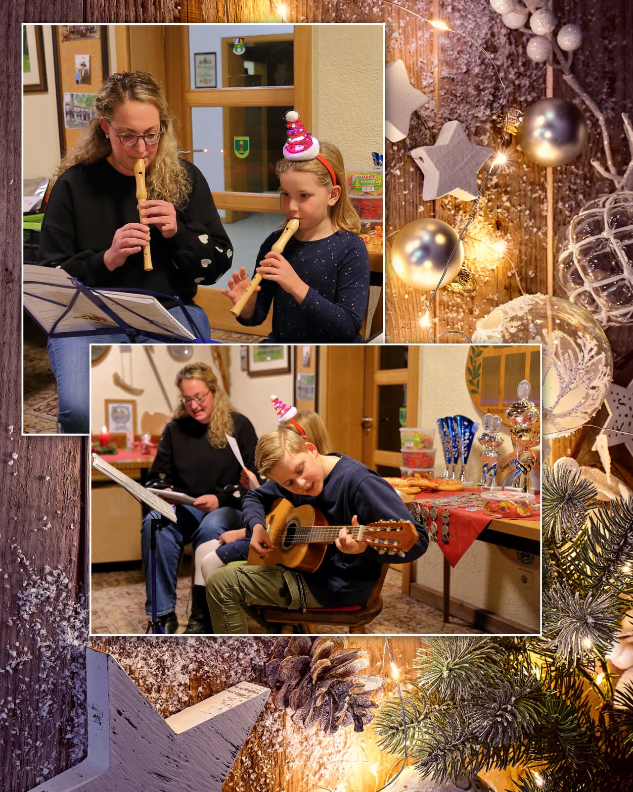 Der besinnliche Teil wurde größtenteils von unseren Jugendsprechern unter Leitung von Max Matter organisiert, der sich auch wieder ein Quiz für die Besucher überlegt hatte und dieses auch moderieren durfte. Vorher gaben aber noch Emma und Jakob Jörg zusammen mit deren Mama Maria einige Weihnachtslieder, bei denen alle mitsingen durften, musikalisch zum Besten.
