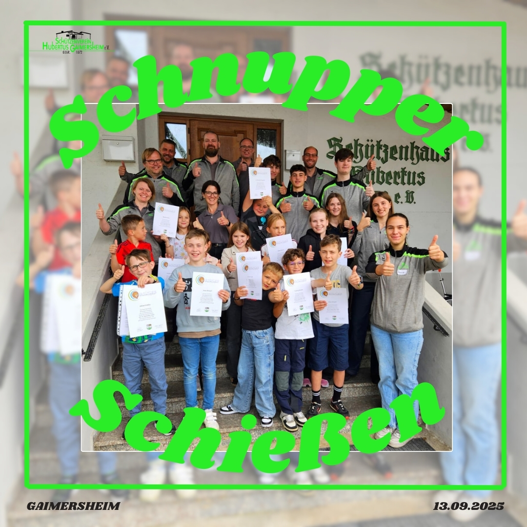 Am Samstag, 13. September 2025, beteiligte sich die Jugendleitung von Hubertus Gaimersheim wieder am Ferienprogramm der Marktgemeinde und bot am Schießsport interessierten Kindern ein Schnupperschießen an.