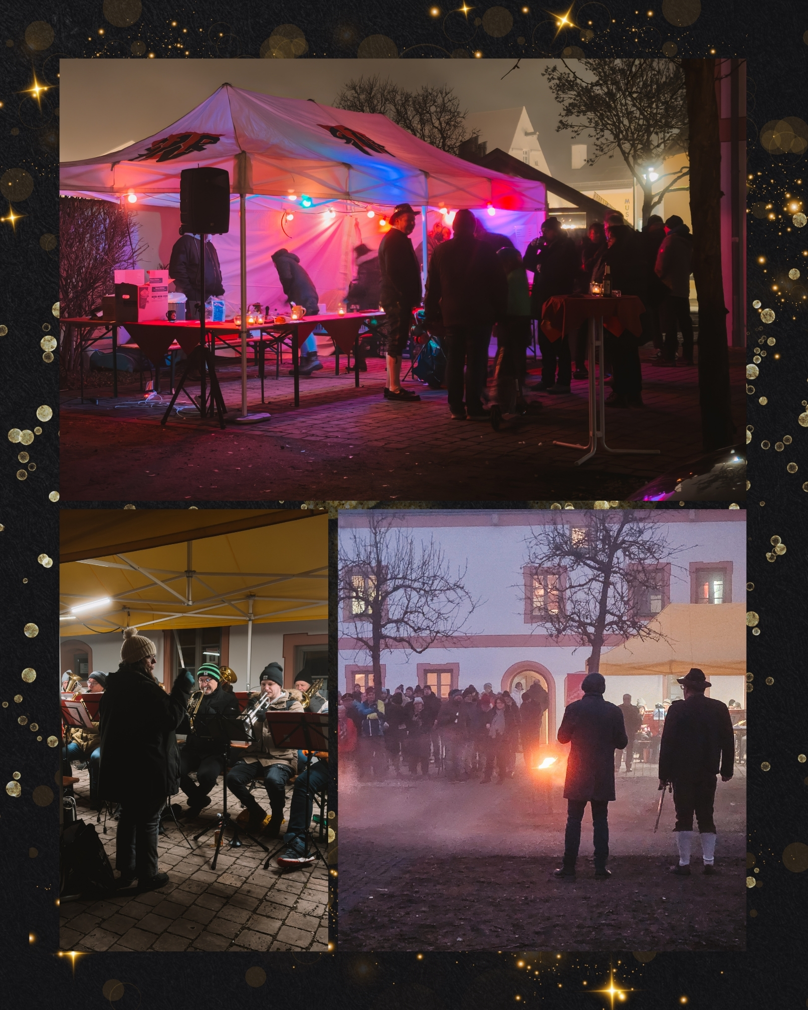 Mit einem lauten gemeinsamen Knall aller Böller und der Kanone des Soldaten- und Reservistenvereins endete der offizielle Teil. Bei Glühwein, Gebäck und Gulaschsuppe klang der Abend in schöner Stimmung aus.