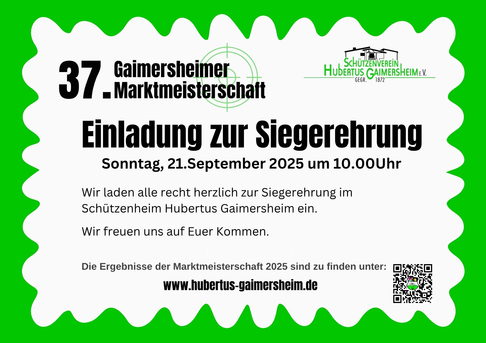 Vergangenen Sonntag fand die Preisverleihung der 37. Gaimersheimer Marktmeisterschaft im Schützenheim von Hubertus Gaimersheim statt.
