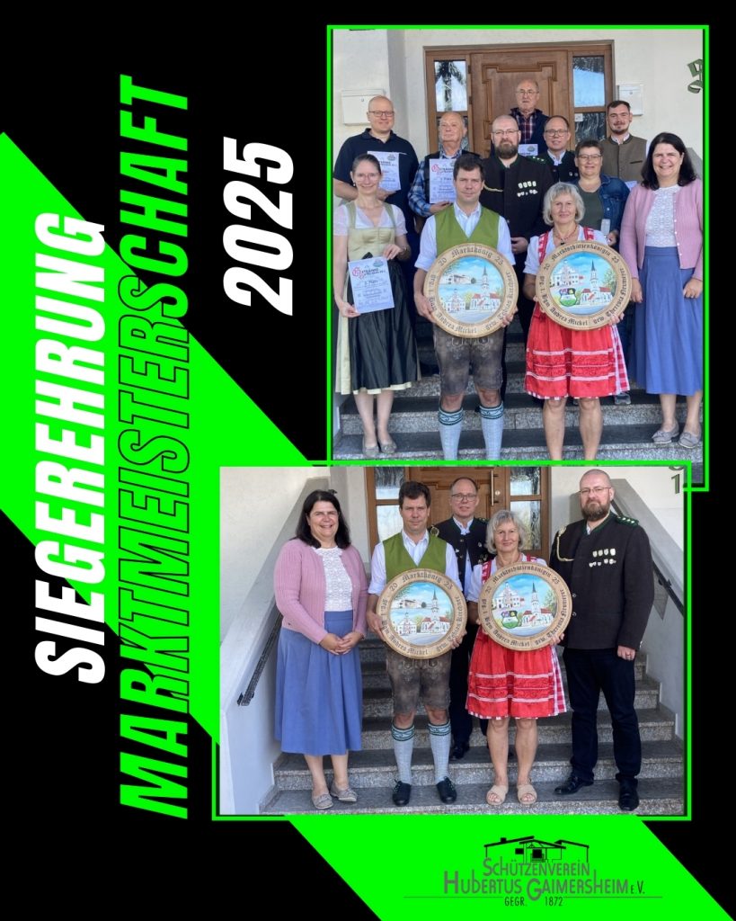 Marktmeisterschaft 21.09.2025: Siegerehrung Marktmeisterschaft 06.06.2025: Eröffnungsschießen Marktmeisterschaft 07.06.2024: Eröffnungsschießen Marktmeisterschaft 20.08.2023: Preisverteilung Marktmeisterschaft 2023 02.06.2023: Eröffnungsschießen Marktmeisterschaft 10.09.2022: Preisverteilung Marktmeisterschaft 2022