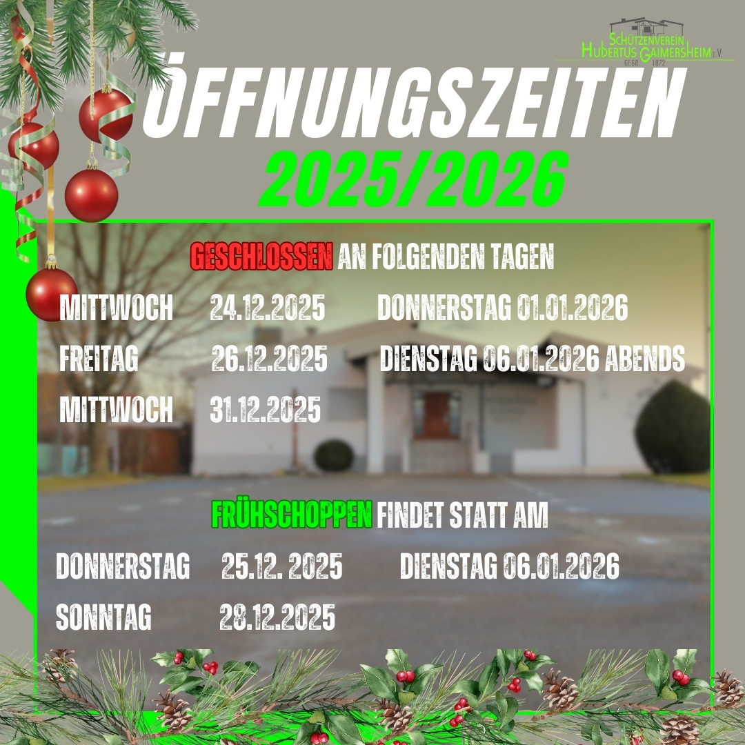 wir möchten Euch rechtzeitig über unsere Öffnungszeiten zwischen Weihnachten und Silvester/Neujahr informieren.